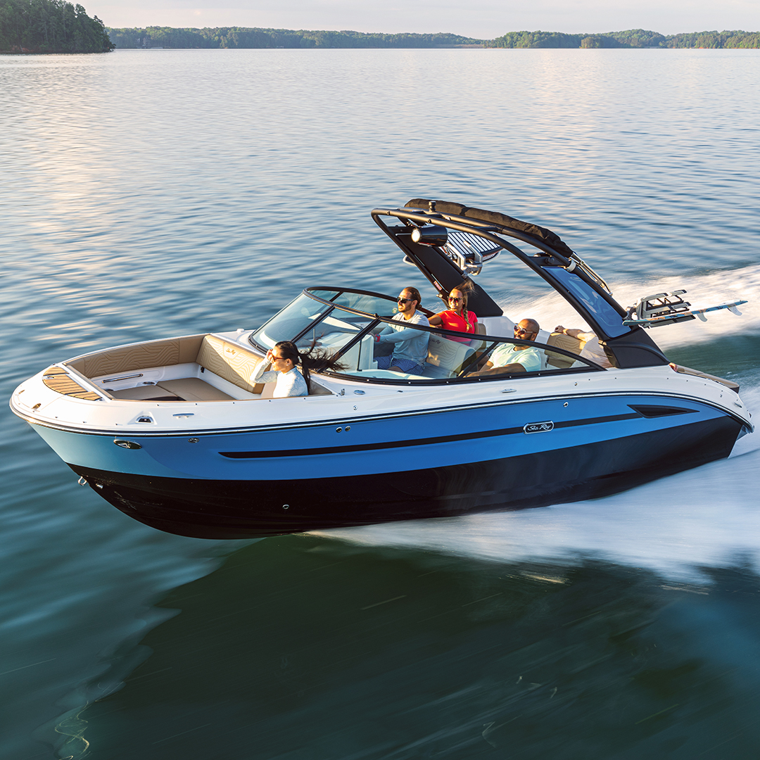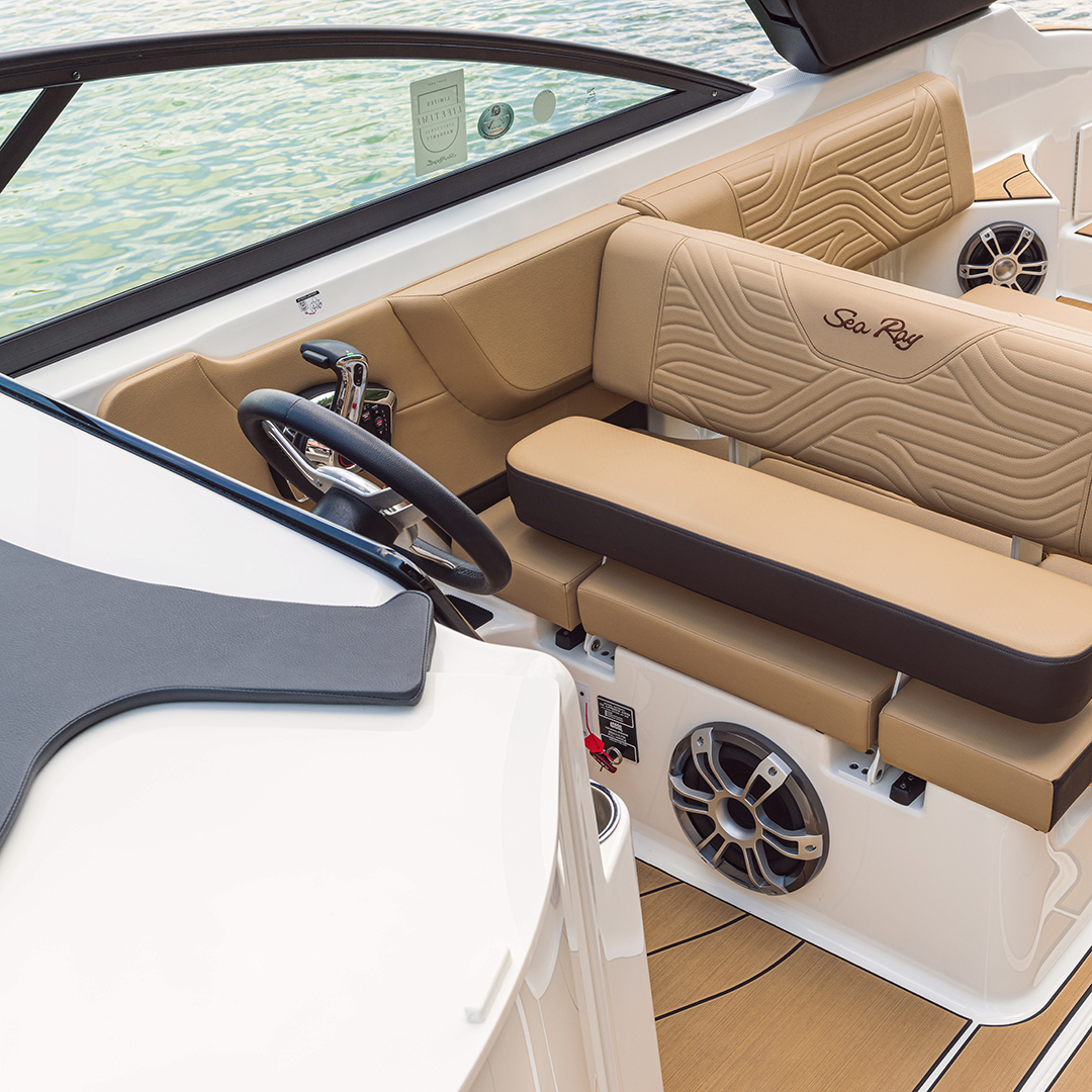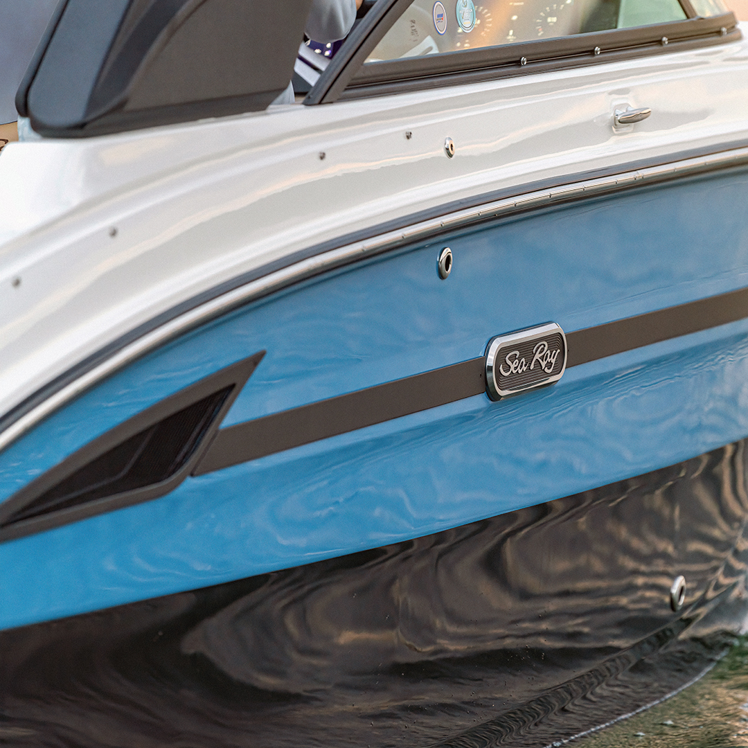 Sea Ray intuitivni NextWave™ sistem za surfovanje, koji neprimetno integriše funkcije spremne za vožnju sa Sea Ray dizajnom sledeće generacije, pokreće standardni MerCruiser® 6.2L motor od 300 KS sa pogonom Bravo Four S® okrenutim napred i podupiračima koji se okreću suprotno. Tehnologija SmartCraft i DTS za poboljšanu upravljivost čine ovaj model idealnim za porodične sportove na vodi, dok nude poboljšanu kontrolu prilikom pristajanja ili putovanja malim brzinama.