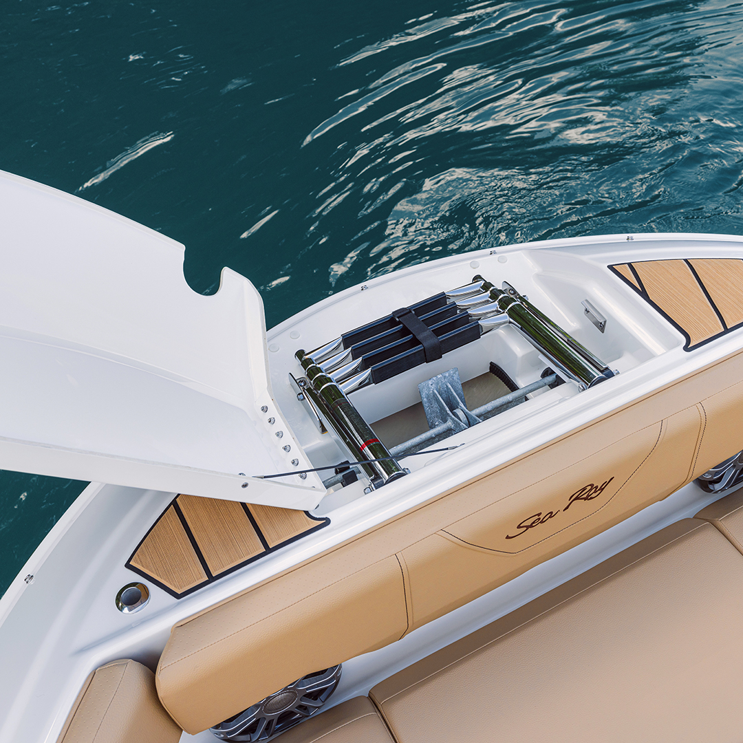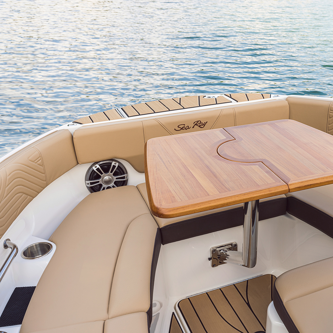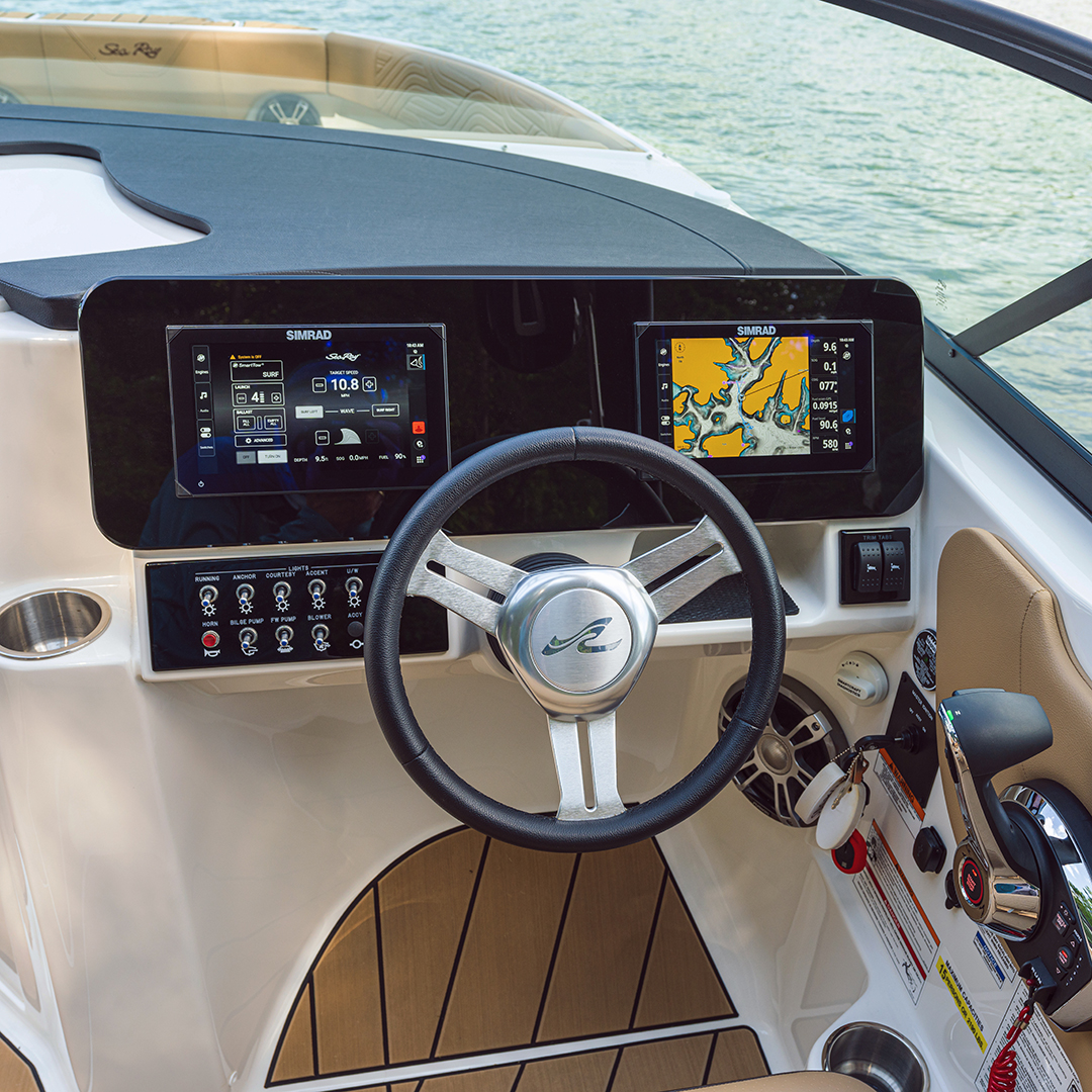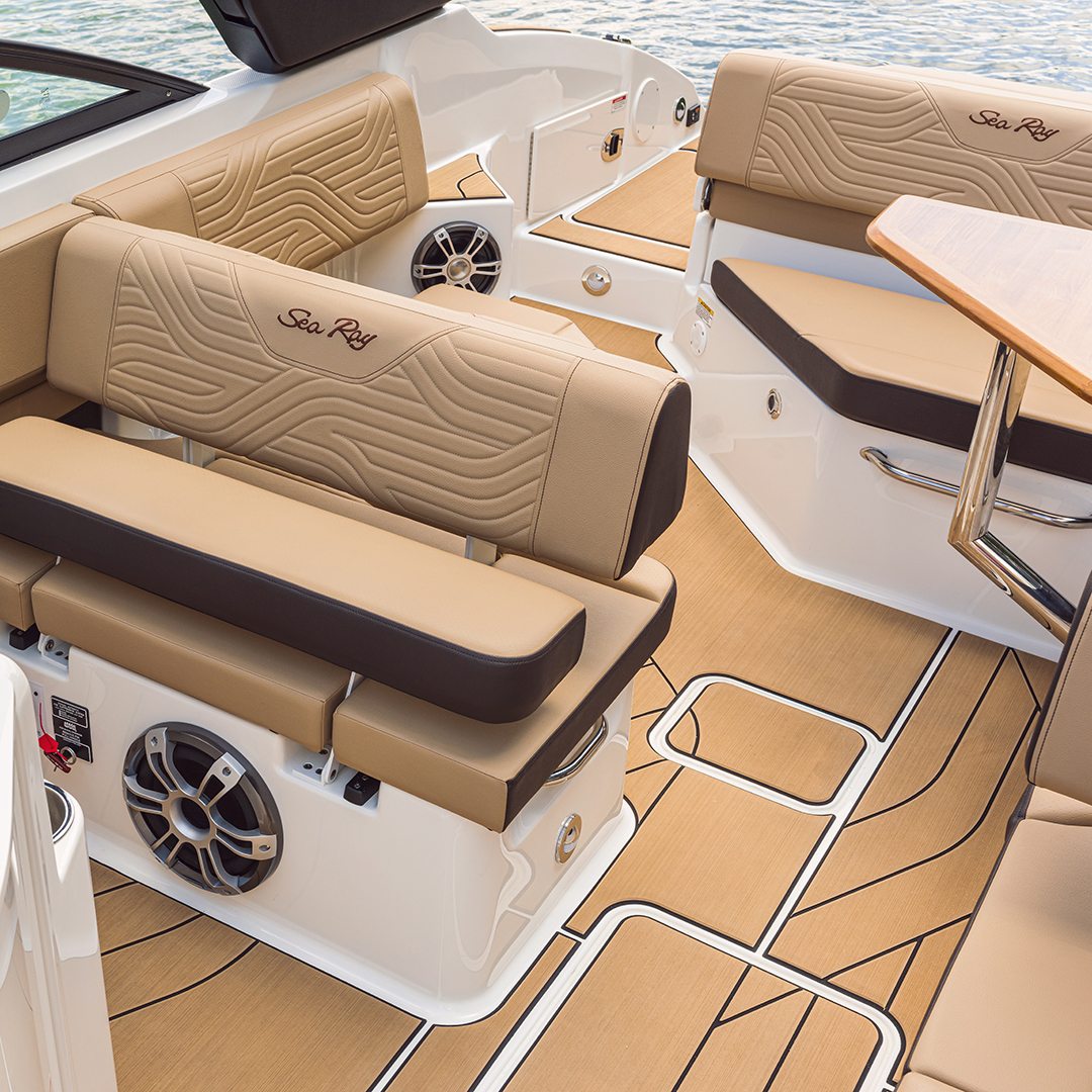 Sea Ray intuitivni NextWave™ sistem za surfovanje, koji neprimetno integriše funkcije spremne za vožnju sa Sea Ray dizajnom sledeće generacije, pokreće standardni MerCruiser® 6.2L motor od 300 KS sa pogonom Bravo Four S® okrenutim napred i podupiračima koji se okreću suprotno. Tehnologija SmartCraft i DTS za poboljšanu upravljivost čine ovaj model idealnim za porodične sportove na vodi, dok nude poboljšanu kontrolu prilikom pristajanja ili putovanja malim brzinama.