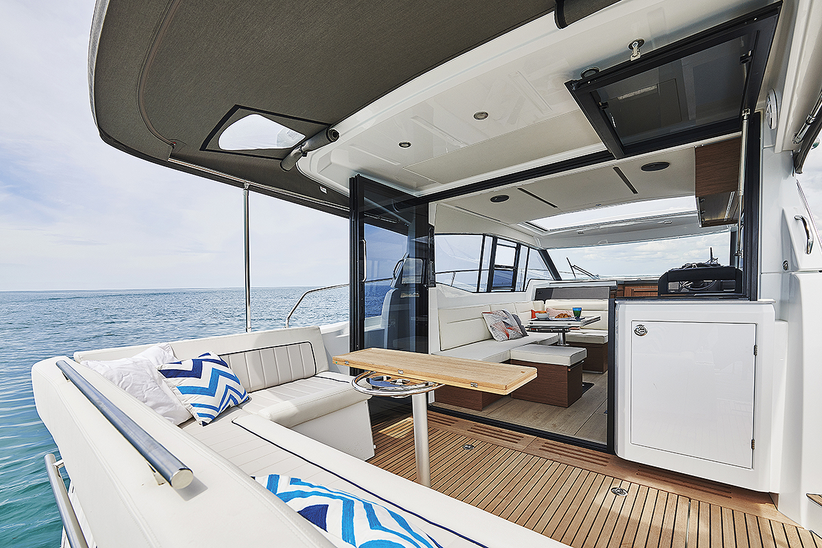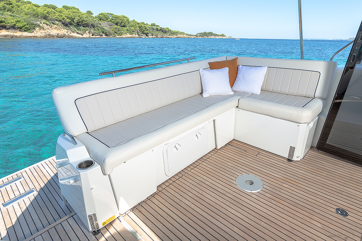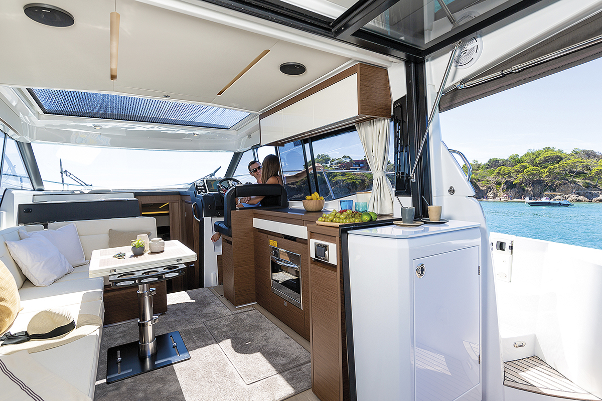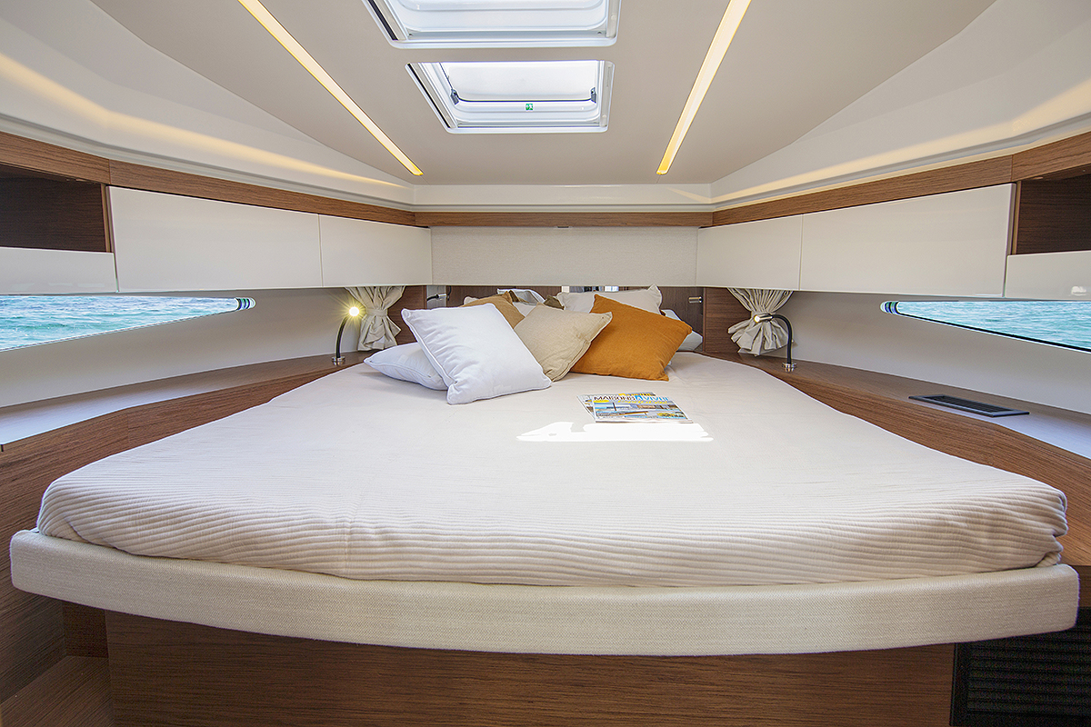 Kada u brodogradilištu Jeanneau kažu da je brod napravljen na jednom nivou, oni govore o kokpitu i salonu. Postoji samo jedan stepenik kojim se silazi do krmene platforme i četiri stepenika dole do kabine.