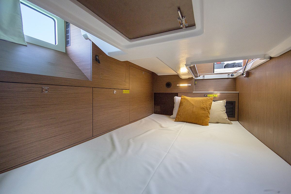 Skroz napred nalazi se master kabina sa bračnim krevetom veličine 2m x 1,5m i prolazima sa obe strane. Ormarić sa ogledalom otvara se i otkriva visoki orman sa štanglom za kačenje odeće iznad koje se nalazi polica za odlaganje stvari.