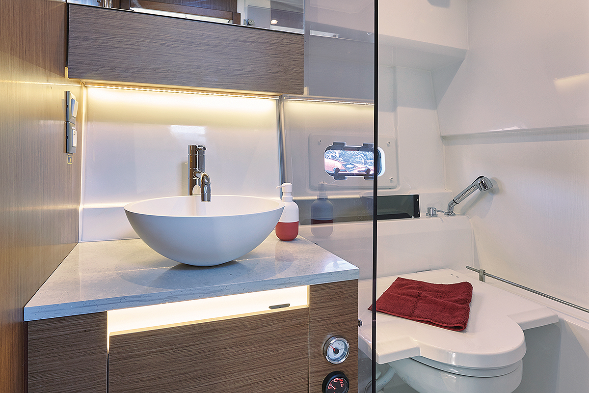 Na obali i pri mirovanju stabilnost je izvrsna, zbog čega su noćenja zaista udobna i samo ćete se nežno ljuljati taman da se uspavate. Pristup oko broda je takođe odličan sa dovoljno prostora da se prođe oko konzole bez potrebe da se stiskate.