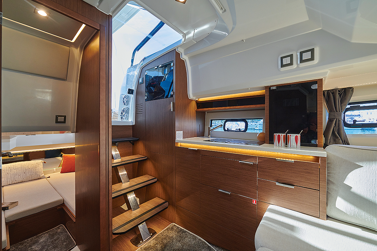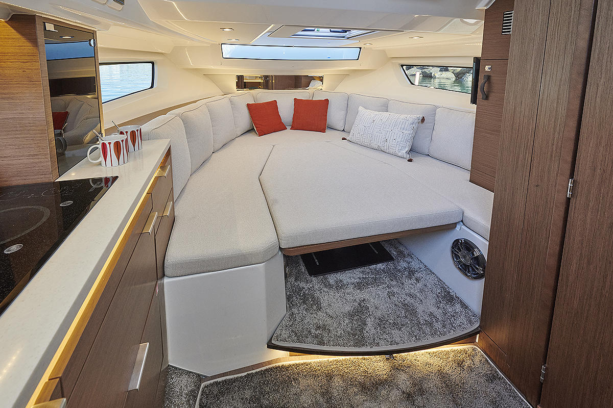 Lako je zamisliti decu, ili one koji se tako osećaju, kako uživaju na ležaljci za sunčanje na pramcu. Tu imate mnoštvo prilika za igru i skakanje u vodu. Nemojte međutim brinuti da ćete nešto propustiti, jer novi 10.5 WA je poznat prostranom rasporedu i upotrebljivosti. U kokpitu vas čeka luksuzan prostor za druženje u kom možete da uživate u dugim letnjim noćima sa pogledom od 360 stepeni na plavetnilo oko vas, zajedno za porodicom i prijateljima. Kada se zabava uveče završi, prostor na pramcu se pretvara u privatnu kabinu, uz kabinu sa dva ležaja pozadi. To je ono po čemu se Jeanneau Cap Camarat 10.5 WA izdvaja, njegov izvrsni raspored
