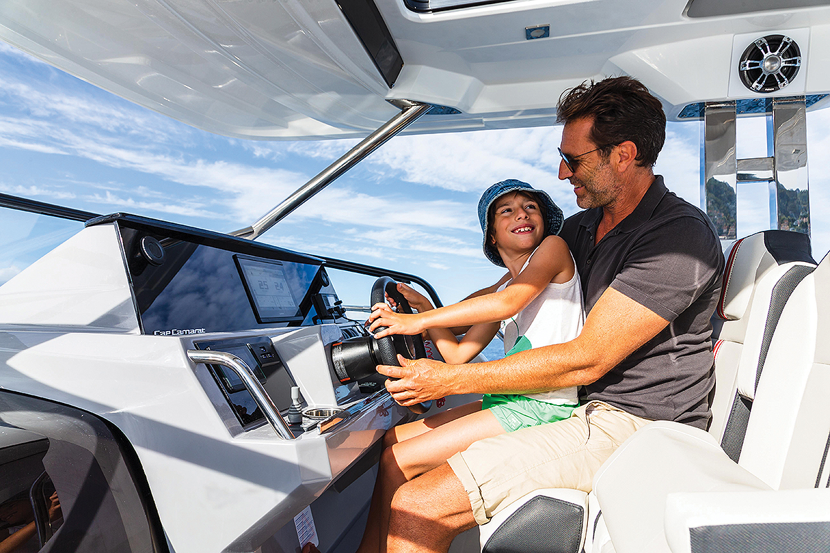 Otvoreni kokpit na modelu Jeanneau Cap Camarat 10.5WA pruža savršen pogled. Odatle možete da gledate i uživate u talasima ili posmatrate decu kako se voze na rekvizitima na naduvavanje iza broda. Neverovatno iskustvo na bilo kom plovilu, ali na novom Cap Cammarat 10.5WA, sa centralno postavljenom konzolom, to iskustvo dolazi sa izvrsnom kontrolom i preglednošću.
