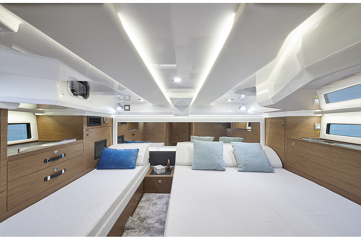 Ispod palube se nalazi komforna kabina, kada se spustite dole, napred se nalazi prostor za sedenje i ručavanje koji se pretvara u veliki dupli krevet. Odvojena kabina u krmenom delu ima pravi „king-size“ krevet i dodatni krevet za jednu osobu uz pogled na more sa obe strane.