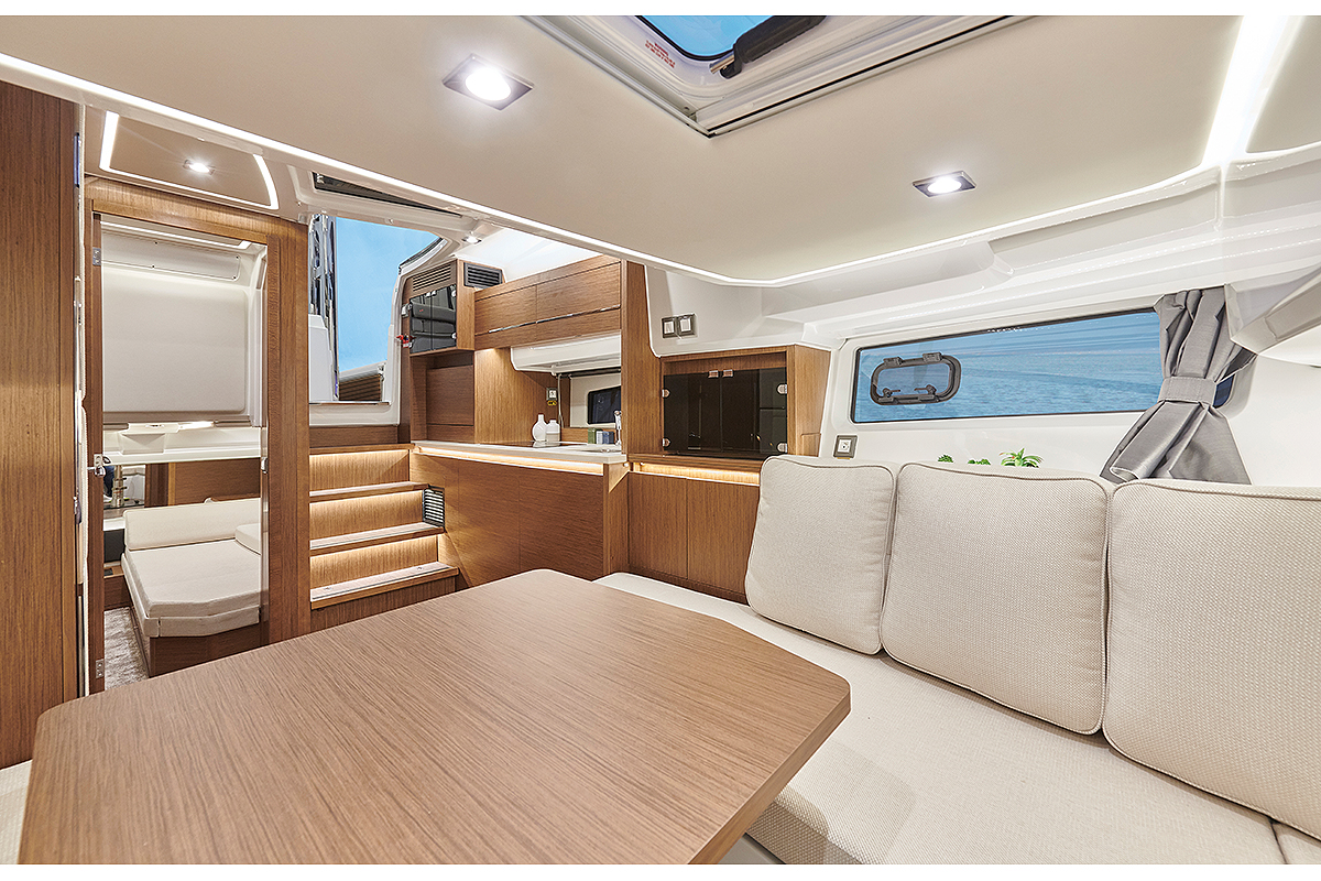 Ako dva „king size“ kokpita i otvorena terasa uvode novu eru udobnosti na spoljnom delu broda, onda centralna kabina koja se prostire celom širinom broda podiže koncept udobnosti unutar broda na potpuno novi nivo. Ako je prostor sada nešto što je obavezno, Cap Camarat 12.5 WA će vas uvesti u svet luksuza i udobnosti.