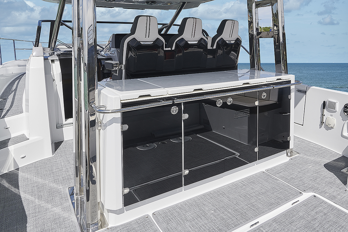 Pozicija za kormilom natkrivena je tvrdom nadstrešnicom koja je postavljena na okvir od nerđajućeg čelika, sa kliznim prozorom, svetlom za palubu i osvetljenjem u prednjem i zadnjem delu kokpita.