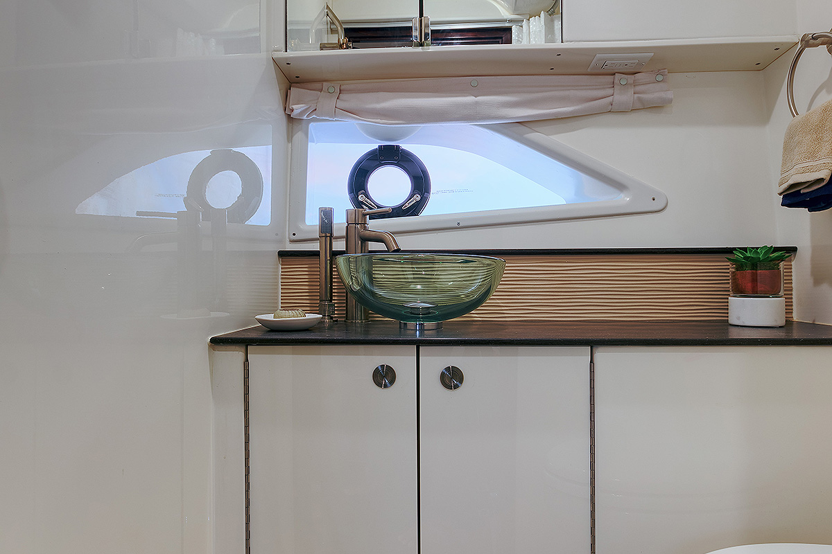 Na visini od 2,06 m iznad palube nalazi se tvrdi krov od fiberglasa sa zvučnicima, opciono platnenom tendom napred i tendom na izvlačenje pozadi koja natkriva celu garnituru za sedenje u kokpitu. Ambijentalno osvetljenje nalazi se ispod tvrdog krova. Postoji mogućnost da se sa ceradom koja ima “prozore” zatvori kokpit sa tri strane. Na krov može da se postavi radar, antena za radio stanicu, tv, kamera…