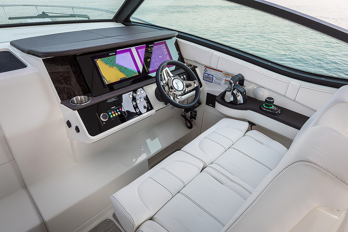 Kada zakoračite na plovilo Sea Ray 320 Sundancer odmah ćete biti impresionirani prelepim, luksuznim vinilom i platnom kojim su tapacirana sedišta, opcionim