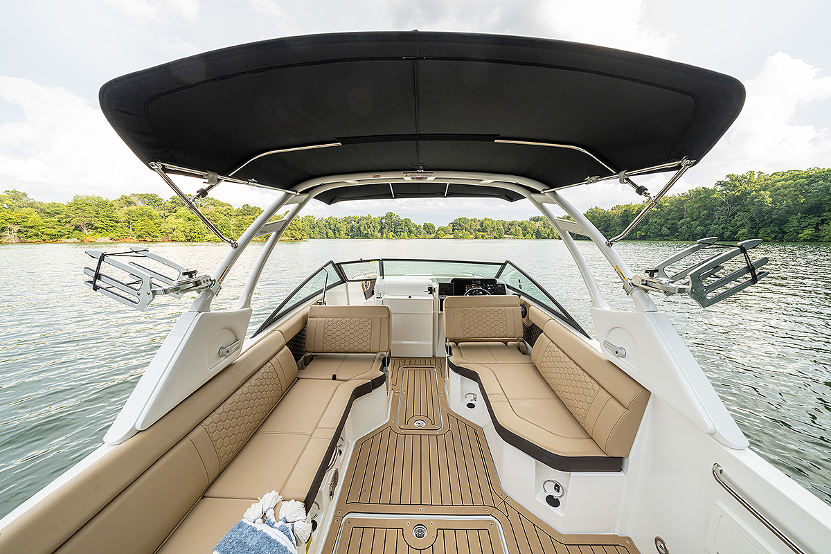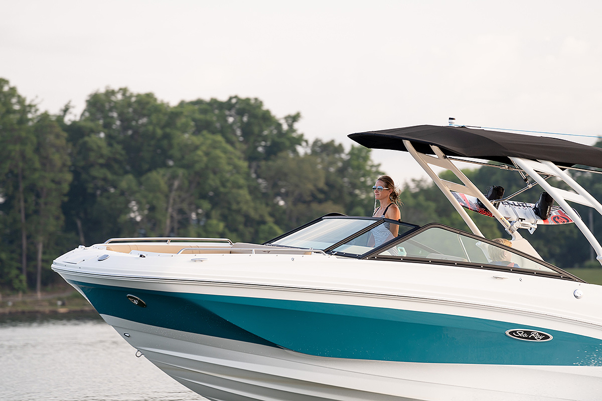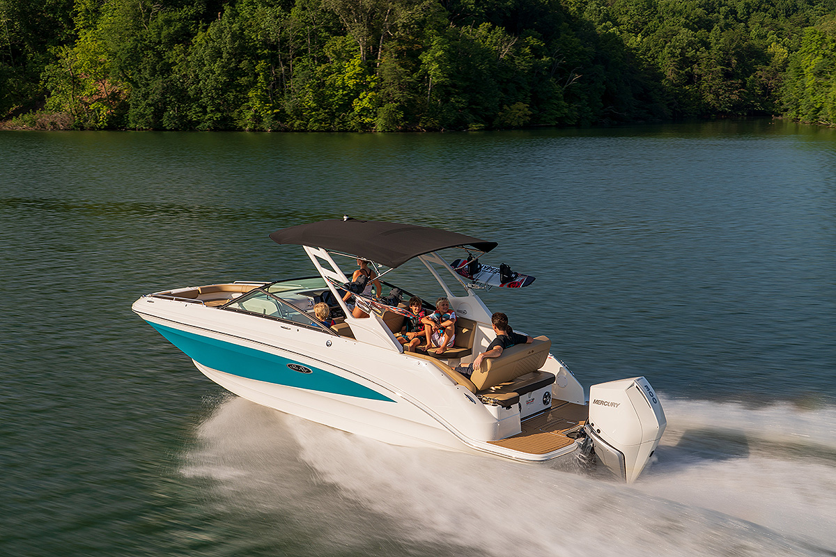 Za razliku od drugih vanbrodskih modela, motor na ovom brodu ne ograničava zabavu prilikom kupanja. Sea Ray 250 SDX možete da motorizujete agregatima od 250, 300 ili 350 ks.