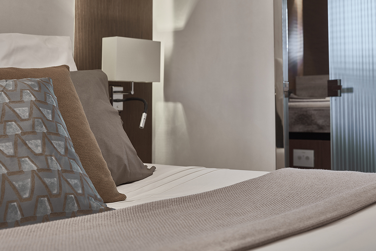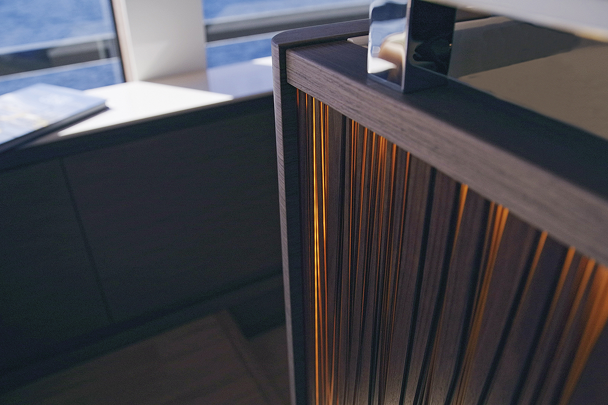 Centralni deo jahte je prepun detalja svetske klase – kožnih garnitura brenda Foglizzo i ručno izrađene drvenarije koja se ponekad dovršava ručno lakiranjem ili uljenjem. Završna obrada je nijansirana kako bi svaki deo broda zračio glamurom i ekskluzivnošću. Vlasnicima je omogućena personalizacija rasporeda, što uključuje odabir stolova, stolica, ležaljki i garnitura, omogućavajući prilagođavanje prema njihovim potrebama.