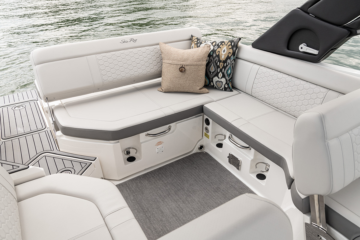 Sa impresivnim kapacitetom za sedenje, ogromnom fleksibilnošću, obiljem prostora za odlaganje i elegantnim izgledom, SDX 250 poziva porodice kako iskusnih tako i početnika ljubitelja plovidbe da svaki vikend učine radosnim begom. Svaki centimetar Sea Ray SDX-a je dostojan brenda koji jednostavno radi stvari kako treba. SDX je više od vožnje, to je senzorni doživljaj.U zatvorenoj kabini nalazi se toalet i mali krevet koji će služiti za spavanje dece, ali će prostor biti više posvećen odlaganju.