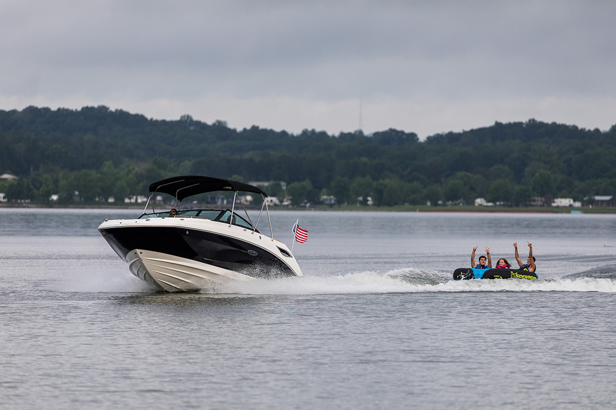 Dostupne opcije poput elegantne platforme koja opciono ima ručno potapajuću platformu, povećavaju mogućnosti za wakeboarding i skijanje, dok dostupni bimini top pruža željenu hladovinu. I kada dođe vreme da obučete ili skinete opremu, ogromna sedišta na zadnjem delu broda sa skrivenim odlagalištem za opremu olakšavaju ceo proces.