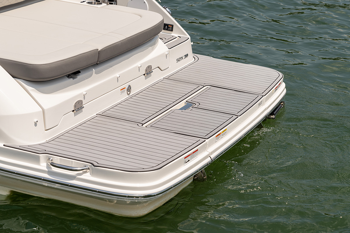 Ispunjavajući reputaciju brenda za inovacije i performanse, MerCruiser motore odlikuje neverovatna efikasnost, pouzdanost i brzina. U srcu svakog SDX-a kuca atletski puls. Maksimalna preciznost performansi i snage osiguravaju brzu i glatku vožnju. Pristup kokpitu je preko desnog bočnog prolaza. Krmena klupa, postavljena na šine, pomera se nazad u kokpit kako bi obezbedila još više prostora na platformi, dok nagibni naslon vam omogućava da uživate u sedištu okrenutom ka moru.