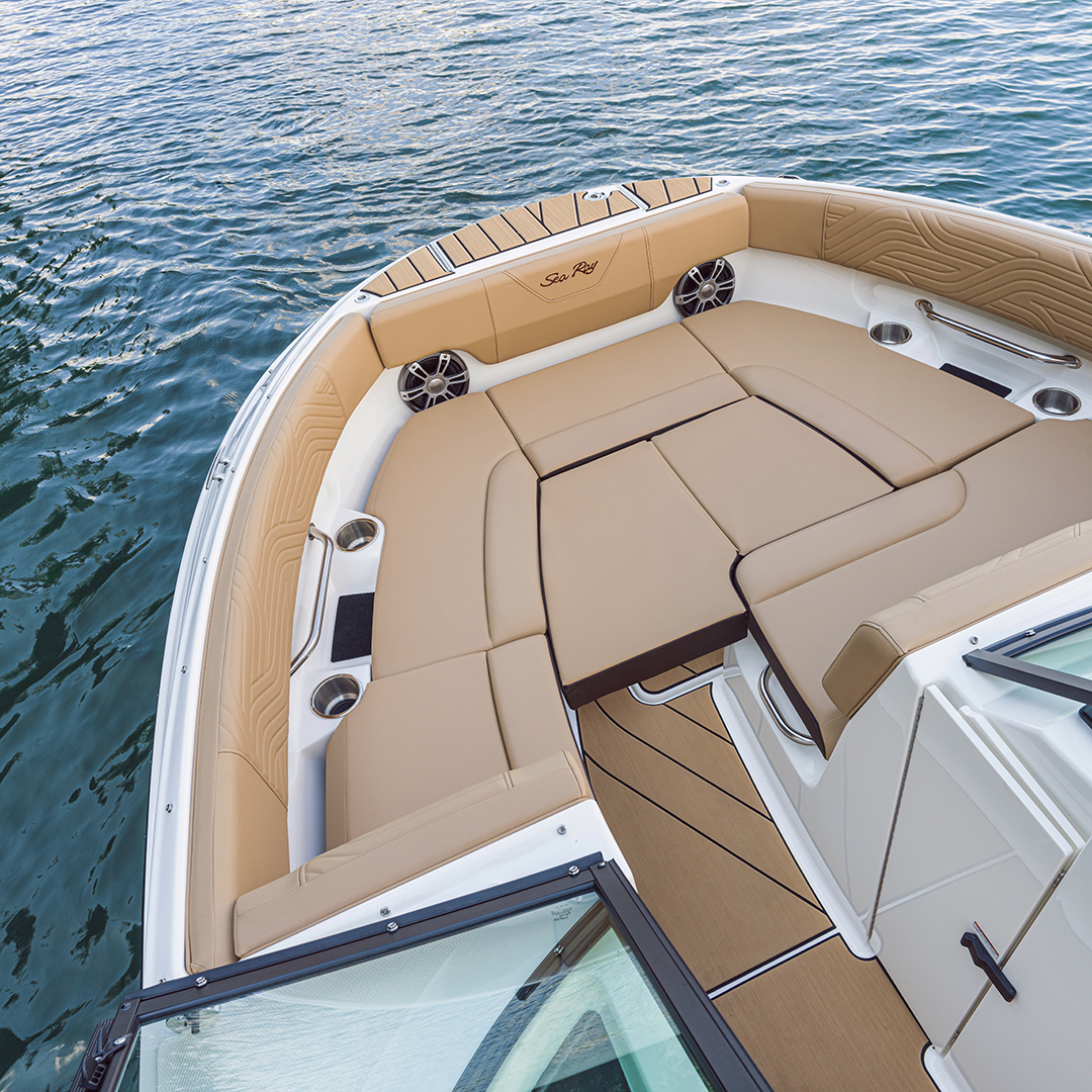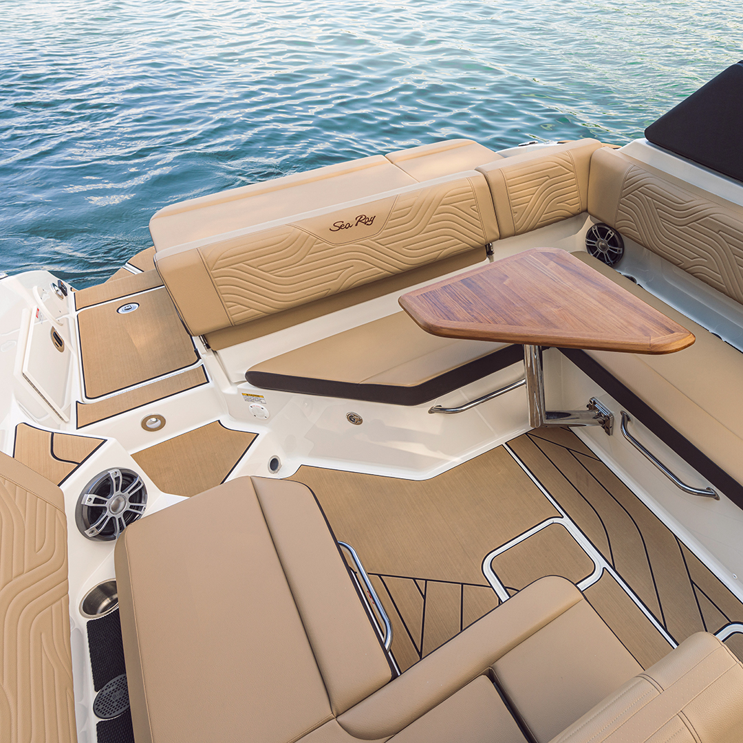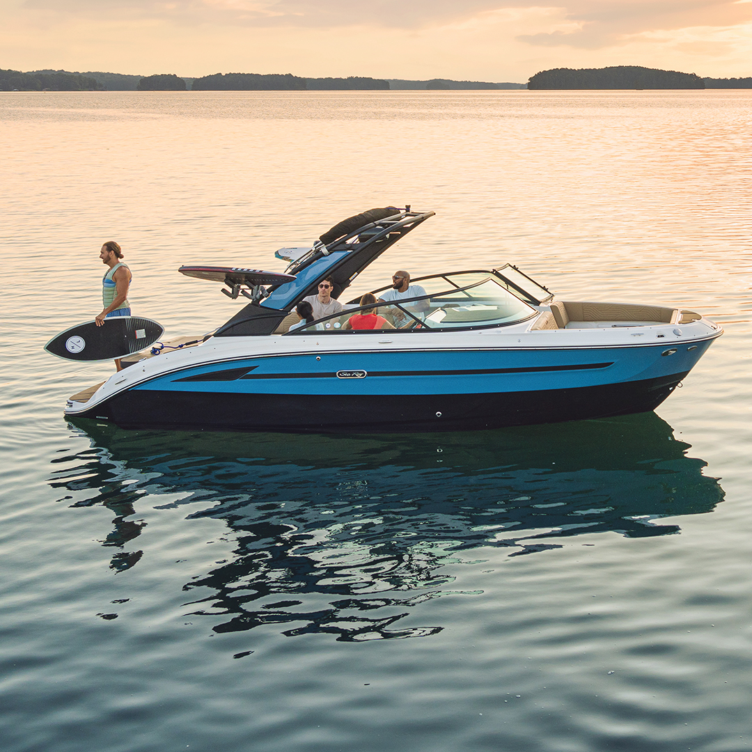 Sea Ray intuitivni NextWave™ sistem za surfovanje, koji neprimetno integriše funkcije spremne za vožnju sa Sea Ray dizajnom sledeće generacije, pokreće standardni MerCruiser® 6.2L motor od 300 KS sa pogonom Bravo Four S® okrenutim napred i podupiračima koji se okreću suprotno. Tehnologija SmartCraft i DTS za poboljšanu upravljivost čine ovaj model idealnim za porodične sportove na vodi, dok nude poboljšanu kontrolu prilikom pristajanja ili putovanja malim brzinama.